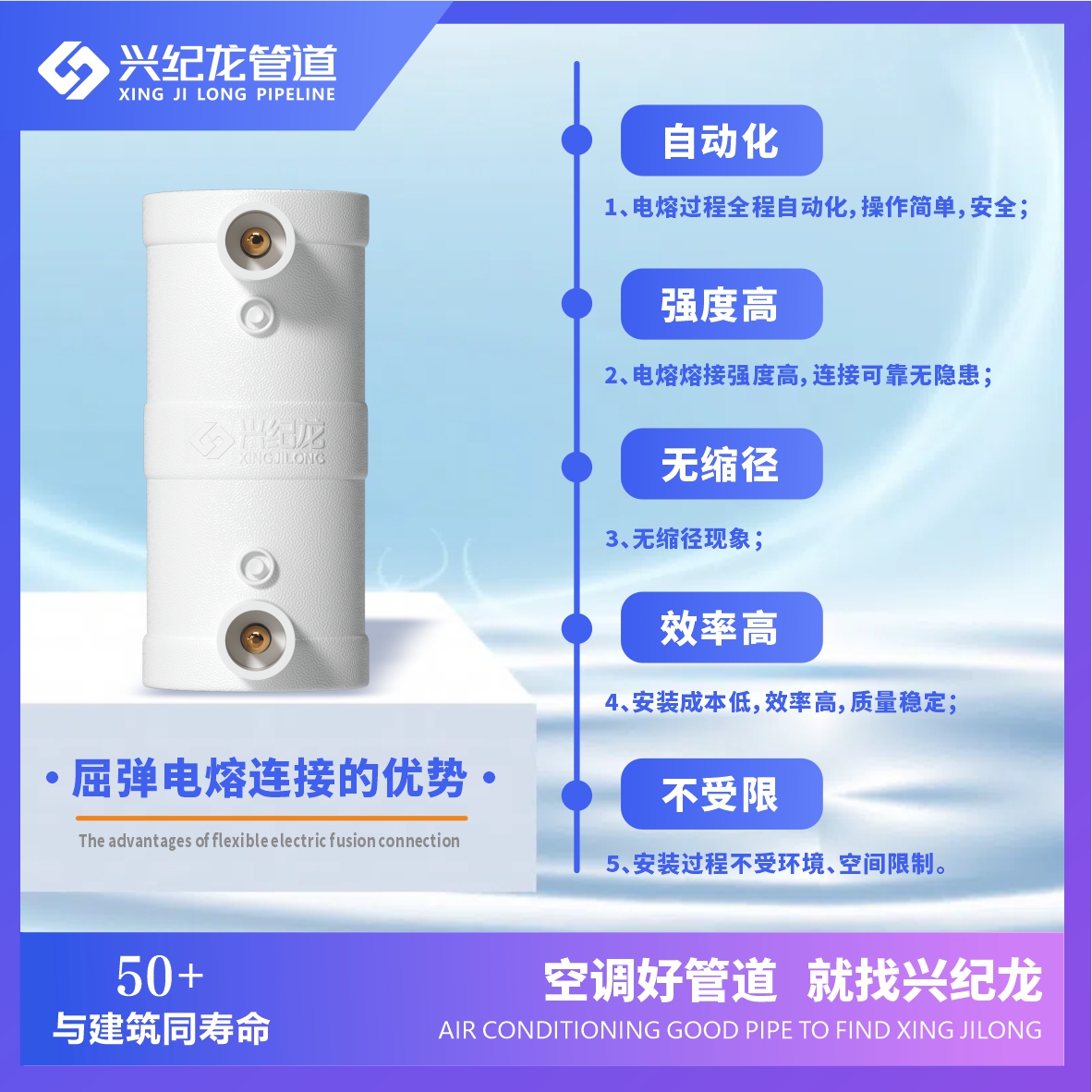 簡介—— 一、產(chǎn)品介紹:興紀(jì)龍PERTⅡ型電熔管件為S2.5系列產(chǎn)品,承壓為2.5MPa,管件兩端口部承口尺寸為15-20mm,鋁