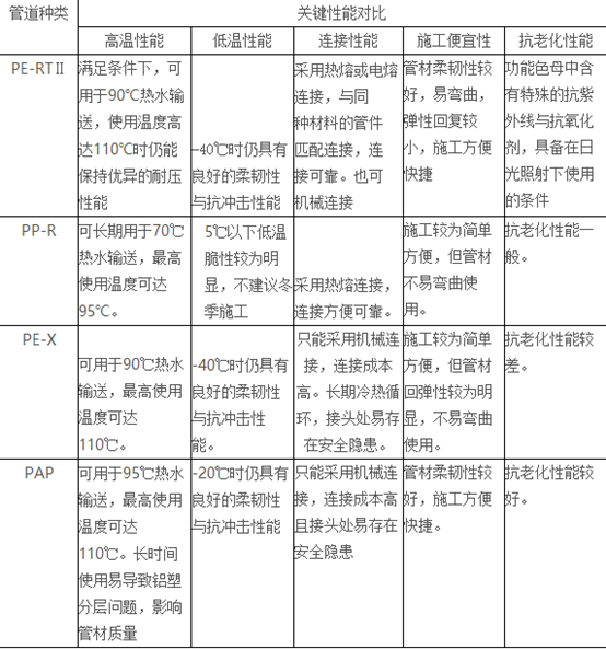 內(nèi)層為承壓塑料管道,要求具有優(yōu)異的高溫耐壓能力(如PE-RTⅡ管道)