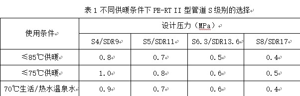 由以上表可以看出,PE-RT II型管道一般選用S5系列即可滿足小區(qū)集中供暖管網(wǎng)的運行溫度、壓力要求。