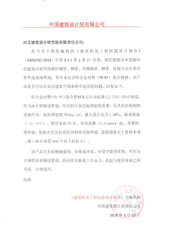鋁合金襯塑復(fù)合管:鋁合金襯塑復(fù)合管采用先性預(yù)應(yīng)力復(fù)合技術(shù)生產(chǎn)形成,內(nèi)管采用耐熱增強聚乙烯(PE-RTI型或者PE-RTII型)、聚丁烯(PB)、無規(guī)共聚聚丙烯(PP-R)、聚乙烯(PE)。鋁合金襯塑復(fù)合管使用領(lǐng)域廣,PE-RT用于生活冷熱水及中央空調(diào)水系統(tǒng)管道、PB用于暖通的明暗裝管材、PPR用于生活給水管道、PE用于燃?xì)夤艿馈D壳颁X合金襯塑復(fù)合PE-RT管大多用于生活冷熱水及中央空調(diào)水系統(tǒng)管道。